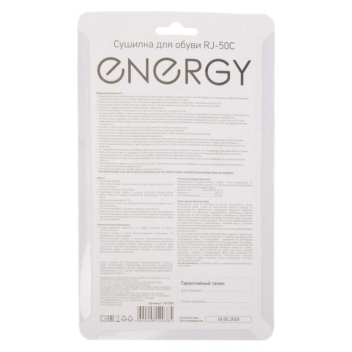 Energy Сушилка для обуви блистер Rj-50c 151550 .