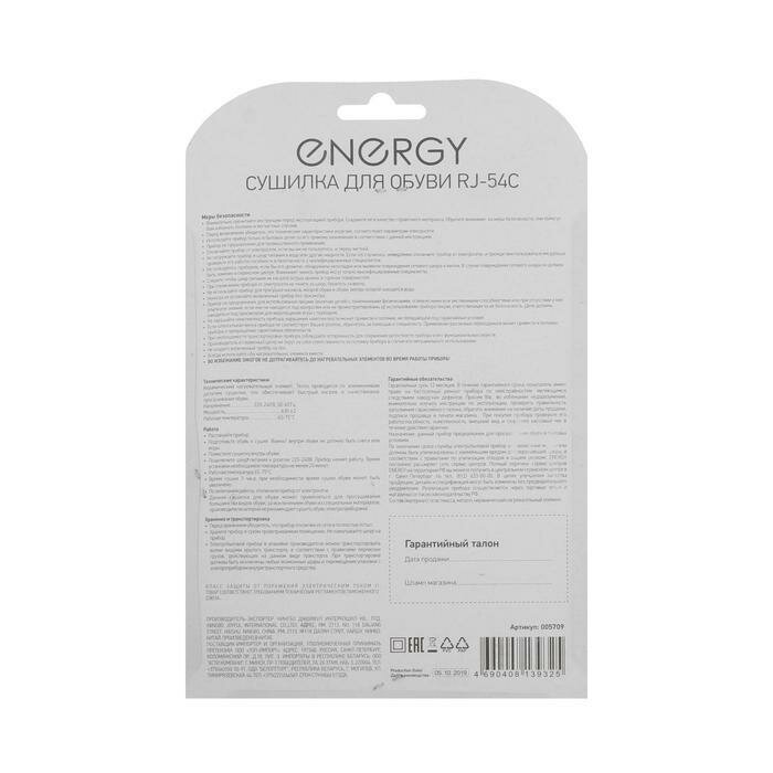 Сушилка для обуви ENERGY RJ-54С, 12 Вт, 65-75°C 5386020