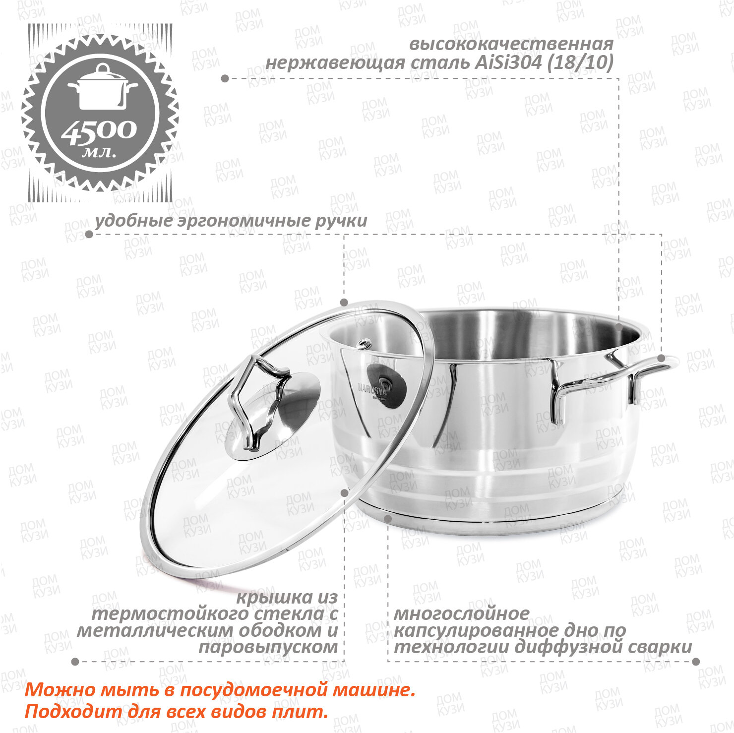 Купить Кастрюля Нерж 4,5Л Классика Ст/кр Индукц ДНО Marusya (6) .