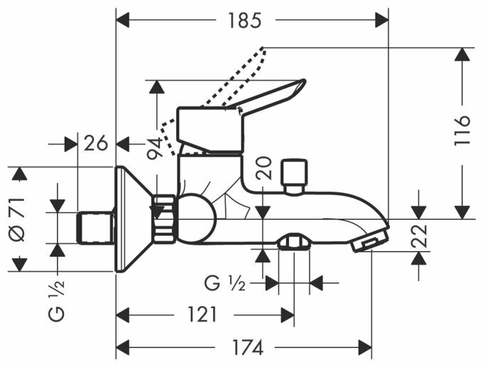 | Длина излива | 174 мм |