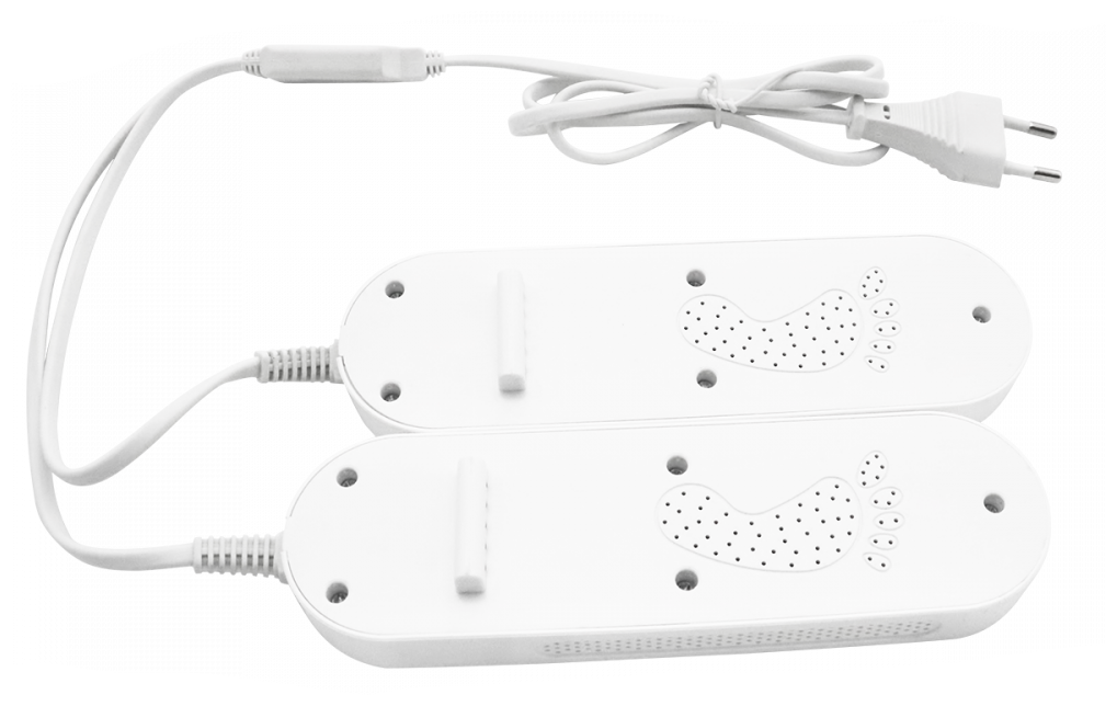 И дома, и на работе такая сушилка. Обувь с ней не портится, даже из деликатной кожи. По всей длине нагревается одинаково. Сушит быстро, электричества берет ничтожно мало. Иногда забываю отключать на ночь, так нельзя, но все нормально с обувью и безопасностью. Маленькая, при надобности легко брать с собой.