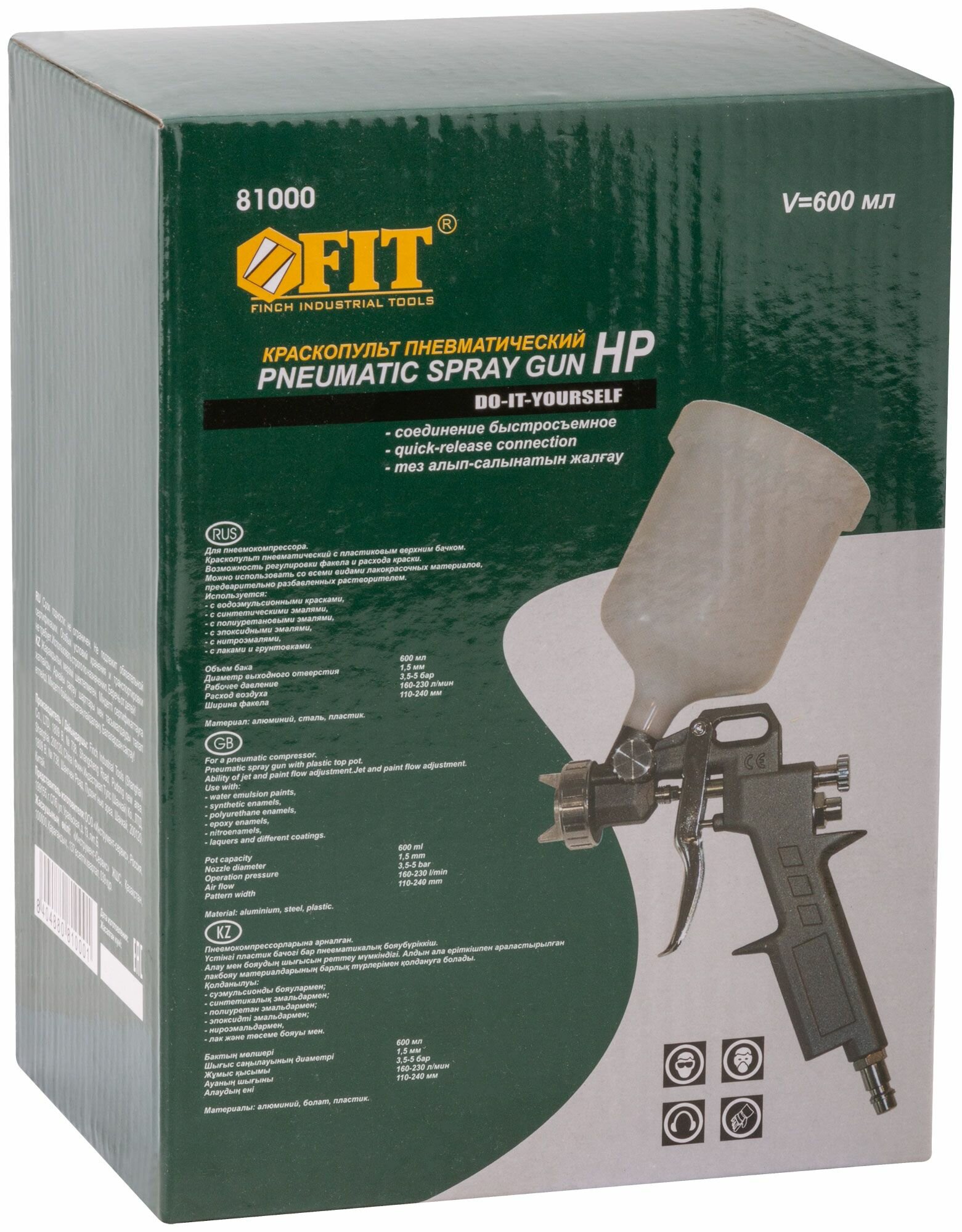 Краскопульт пневматический FIT, быстросъемное соединение, 600 мл. 81000