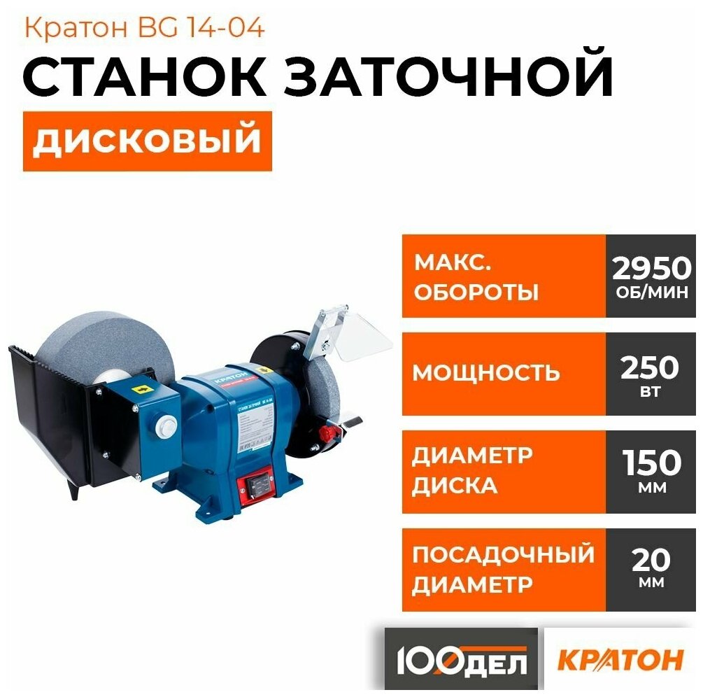 Станок заточной Кратон BG 14-04 (мощность: 250 Вт, Размеры шлифовального круга 150 32 20 мм, Поддон для охлаждения)