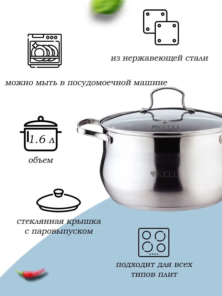 Кастрюля KELLI KL-4256 1,5л, 16 см, хром интересное: