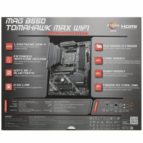 Материнская плата MSI MAG B550 TOMAHAWK MAX WIFI (AM4, B550, 4xDDR4 ATX, HDMI+DP)