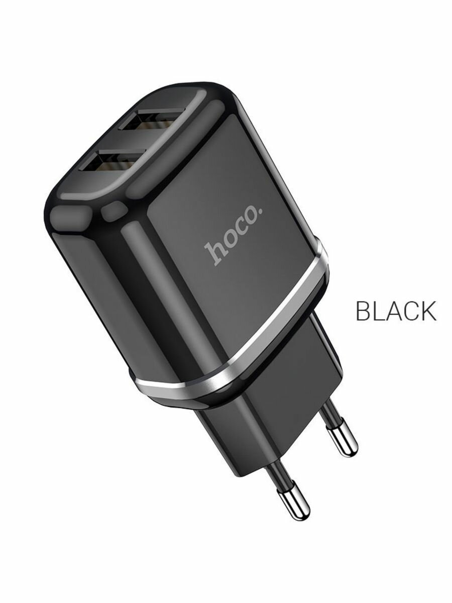 Сетевое зарядное устройство N4 2USB 2.4A черное Адаптер Блок питания HOCO
