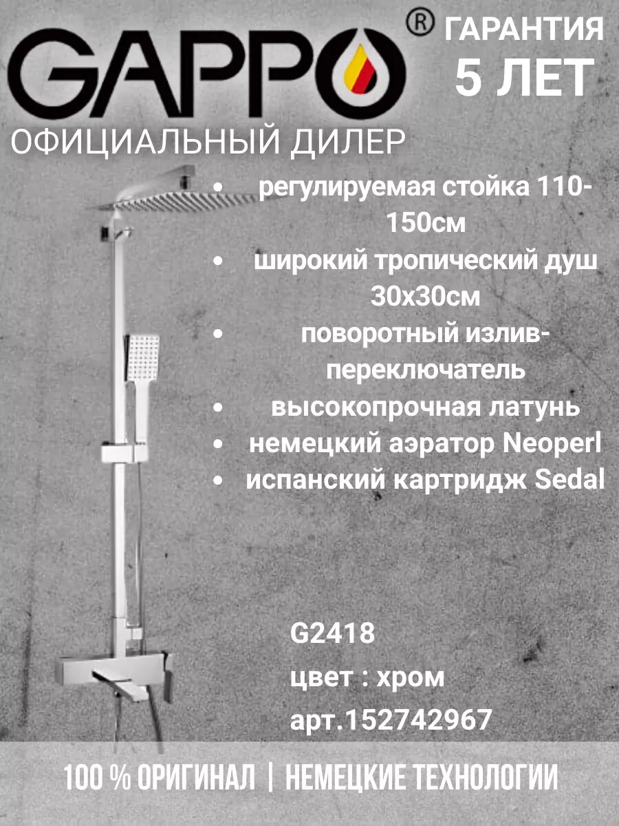 Купить Душевая система 35к G2418 GAPPO лейка "Тропический душ" хром