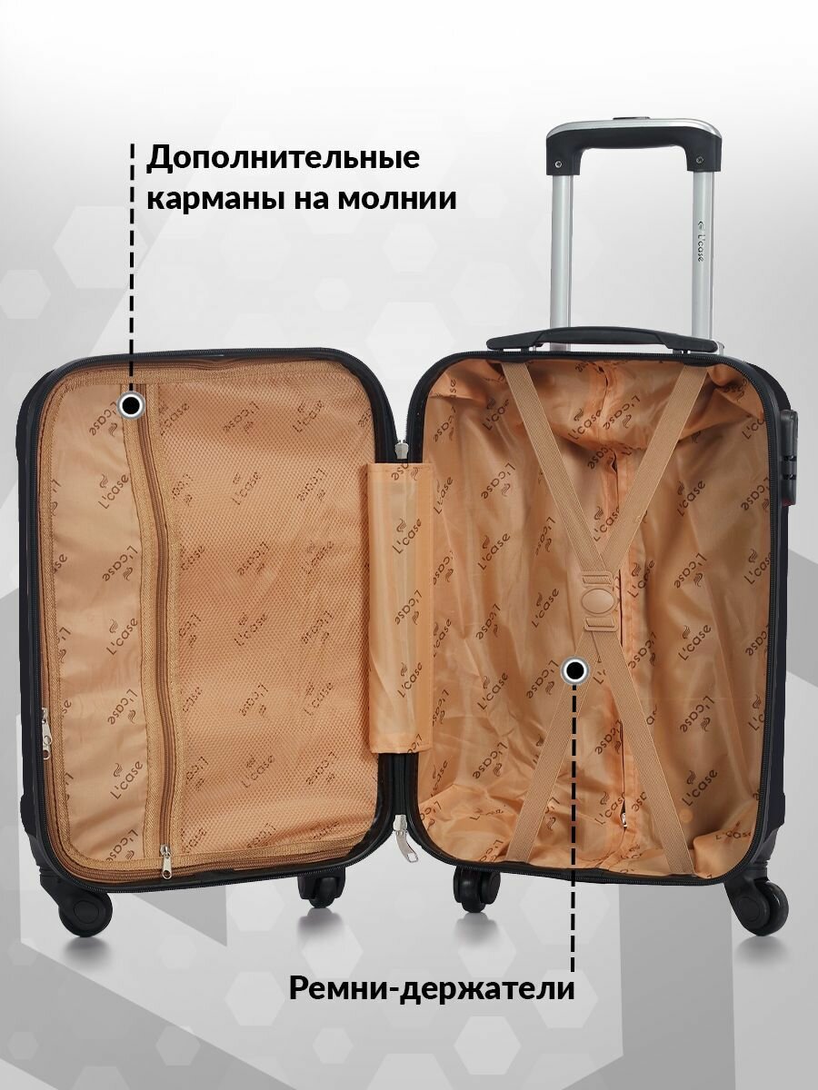Чемодан L'Case Bangkok размер S (ударопрочный ABS-пластик, съемные колеса, телескопическая ручка, кодовый замок-молния) черный