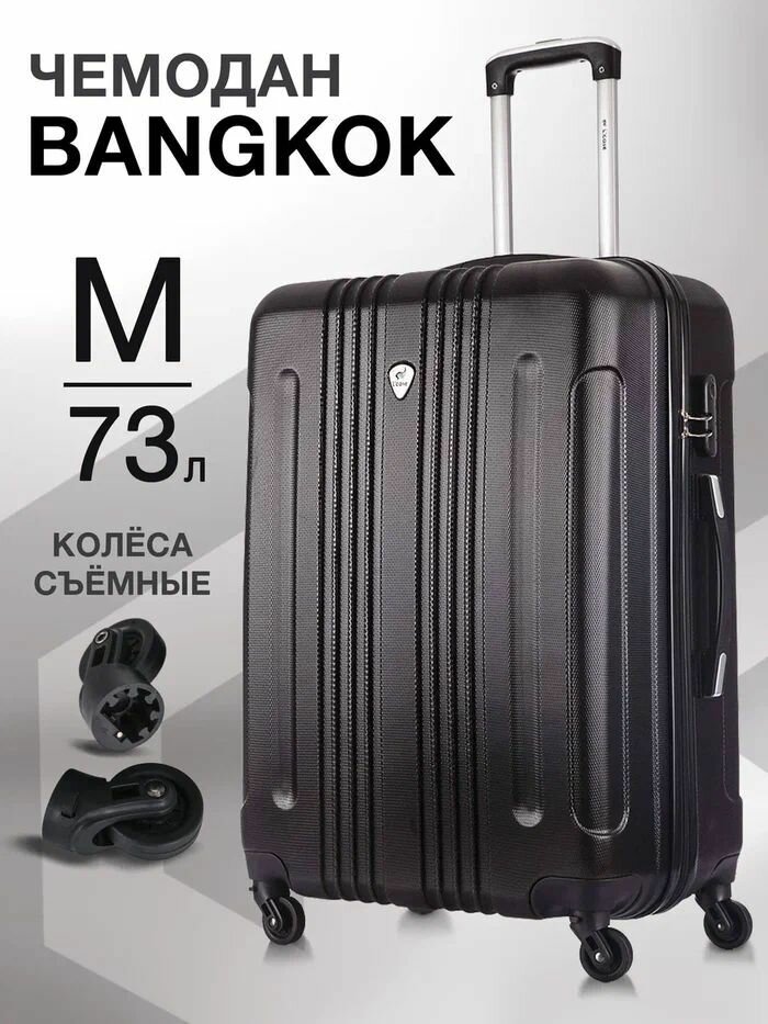 Чемодан на колесах средний S пластиковый Bangkok дорожный, ударопрочный, съемные колеса, кодовый замок, 58 см, 46 л