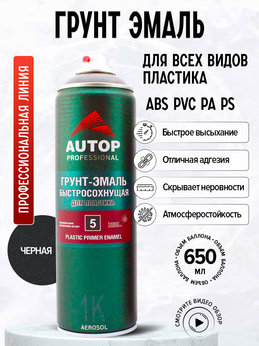 Купить Autop Professional Грунт-эмаль для пластика 5, чёрный, аэрозоль 650 мл ATP-A07275 .