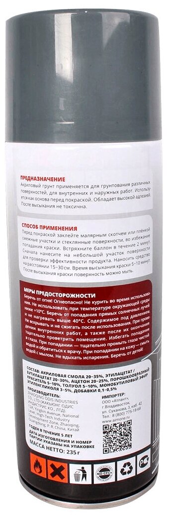 Грунтовка серый матовый (аэрозоль) 450мл AIM-ONE