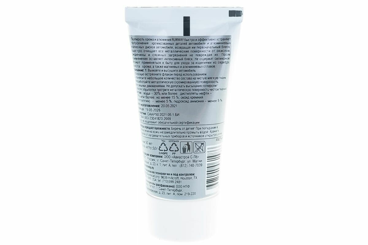 Полироль-Паста Для Хрома И Алюминия (Runway) Rw2546 50мл RUNWAY арт. RW2546