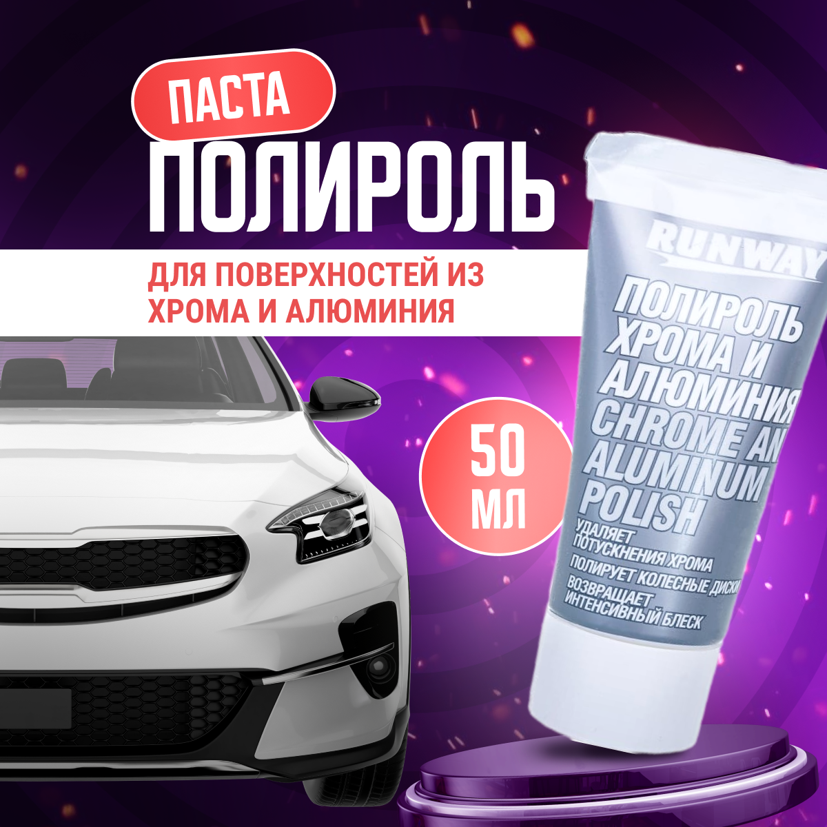 Runway полироль для автомобиля для хрома и алюминия, полировальная паста для авто RW2546 50 мл