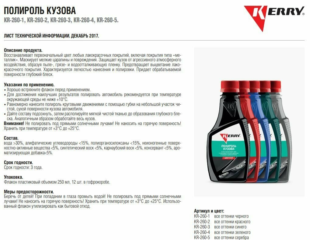 Kr-260-3_Полироль Кузова! Цветной (Для Всех Оттенков Синего) 250Мл Kerry Арт. Kr2603 Kerry арт. KR2603