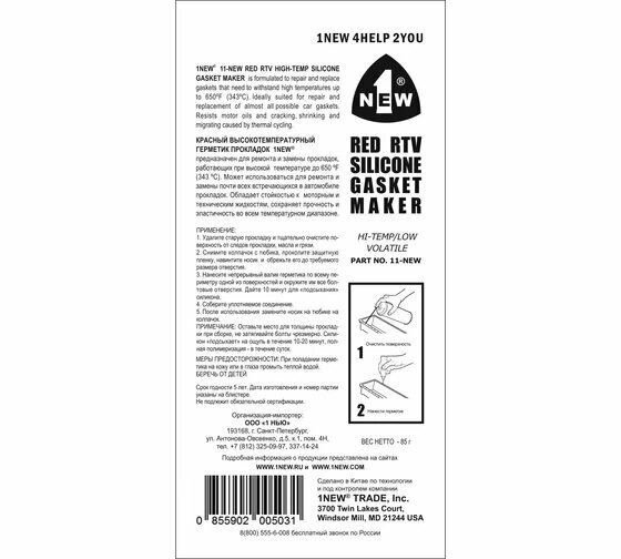 Универсальный силиконовый клей-герметик для ремонта автомобиля 1 New прокладок высокотемпературный 11-NEW/12-NEW, 85 мл, 0.085 кг, тюбик