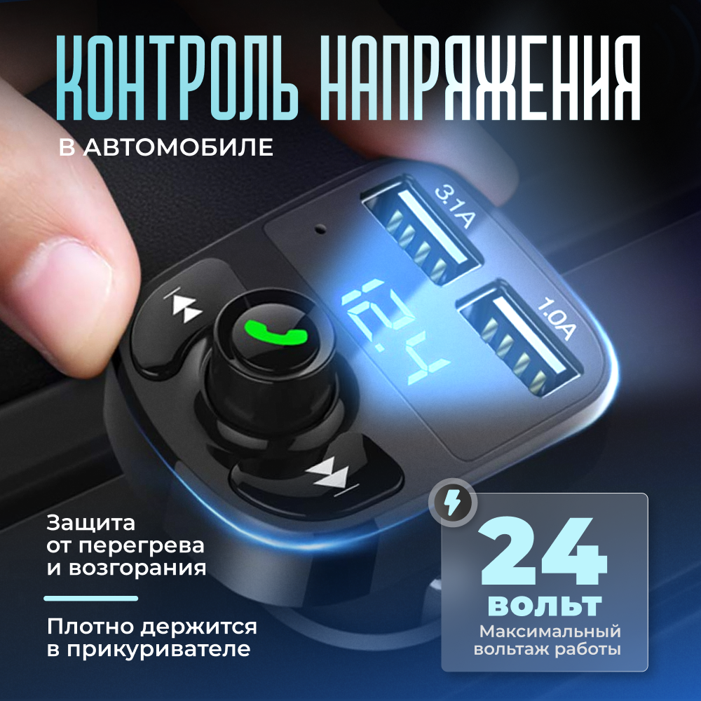 Купить FM трансмиттер Bluetooth модулятор автомобильный, адаптер быстрой зарядки для телефона в прикуриватель машины с 2 USB, цвет черный