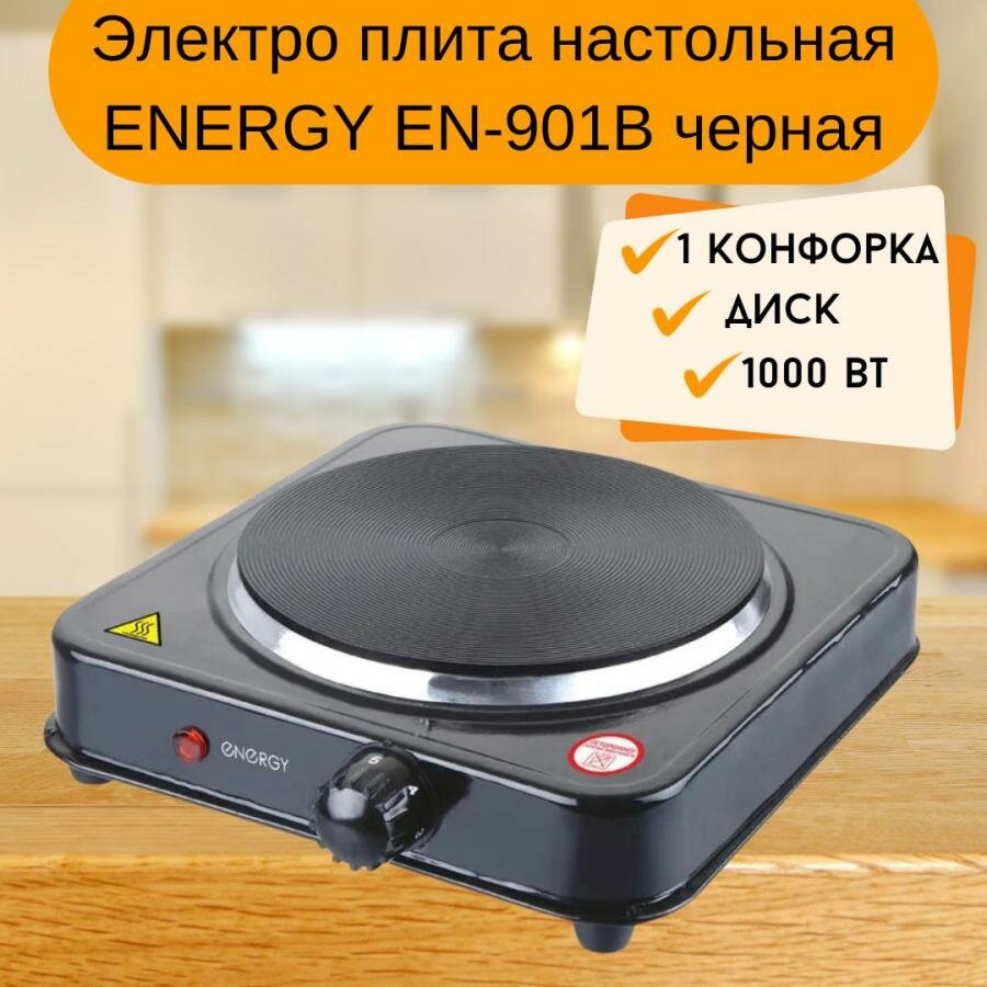 Электроплитка ENERGY EN-901B, 1 конфорка, диск, 1кВт, черная 158956 (арт. 379558)