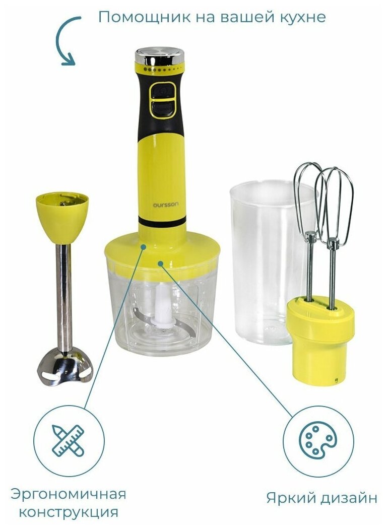 Погружной блендер Oursson "HB8060/GA", 600 Вт, 2 скорости, зеленое яблоко
