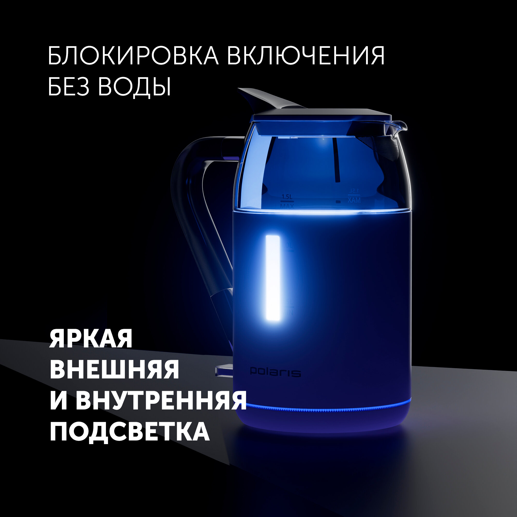 Чайник Polaris PWK 1527CGL, 2150 Вт блокировка включения без воды, стекло, подсветка
