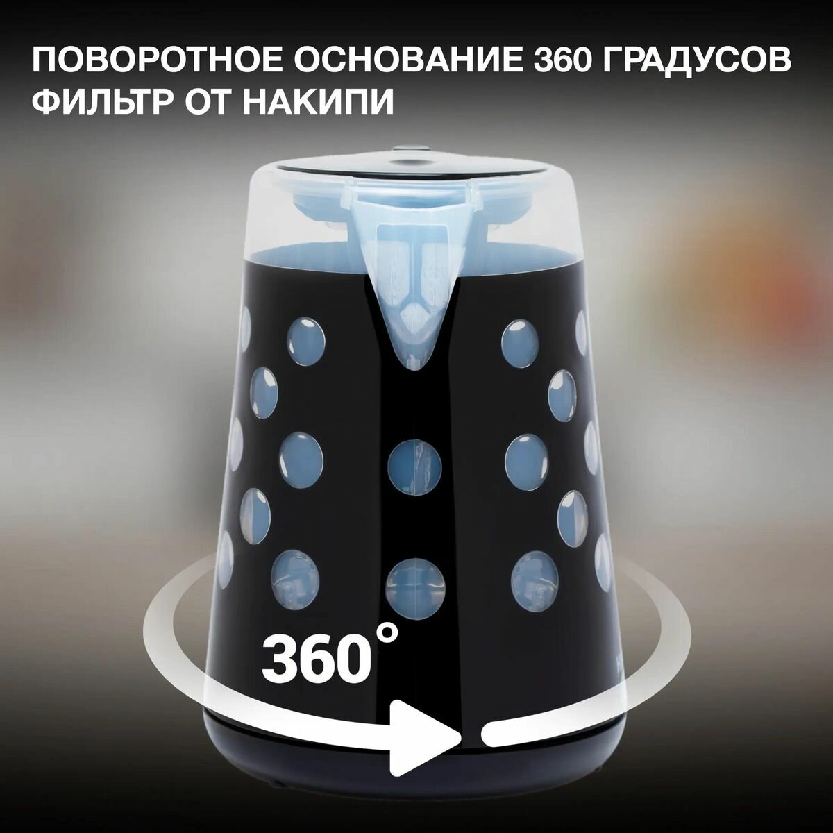 Чайник HYUNDAI HYK-G2012 черный/прозрачный пластик