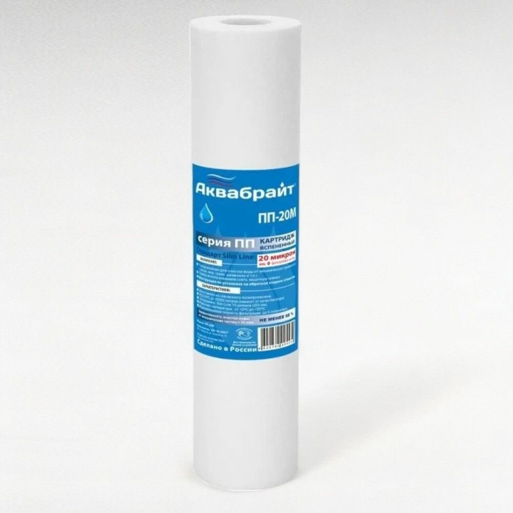 Сменный картридж Аквабрайт ПП-20М, SL10, вспененный полипропилен, 20 мкм