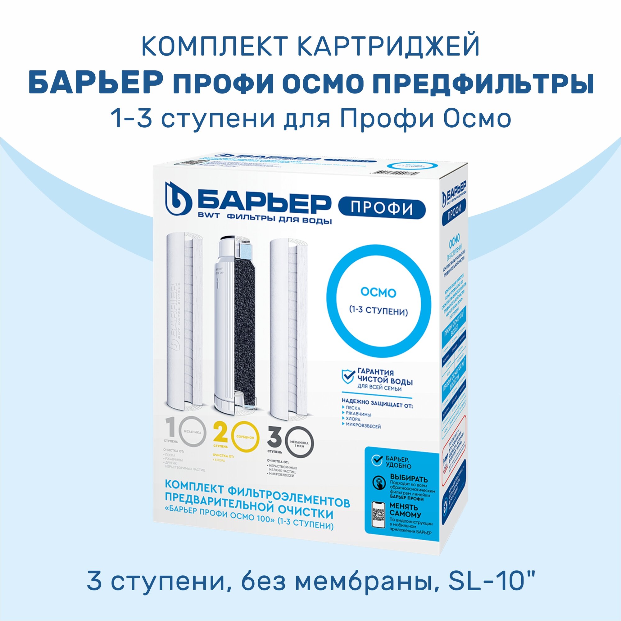 БАРЬЕР профи осмо Предфильтр (1-3 ступени), комплект картриджей для фильтра обратного осмоса под мойку, предварительная очистка, SL10