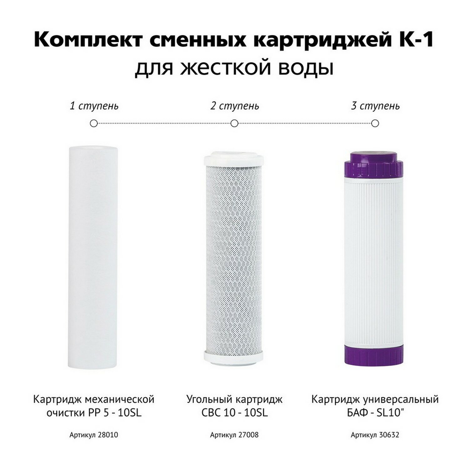 Комплект сменных картриджей для фильтра Гейзер К-1 (для жесткой воды)