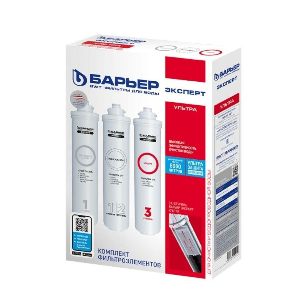 Комплект картриджей для фильтра под мойку БАРЬЕР эксперт Ультра, защищает от бактерий
