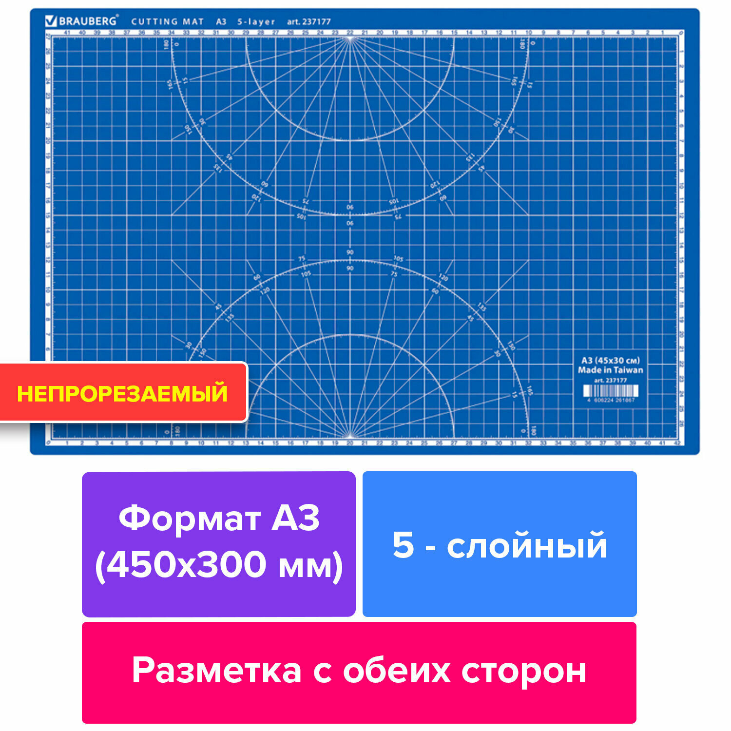 СохранитьКоврик (мат) для резки BRAUBERG EXTRA 5-слойный,А3 (450х300мм),двусторонний,толщина 3мм,синий,237177, 1 шт интересное: