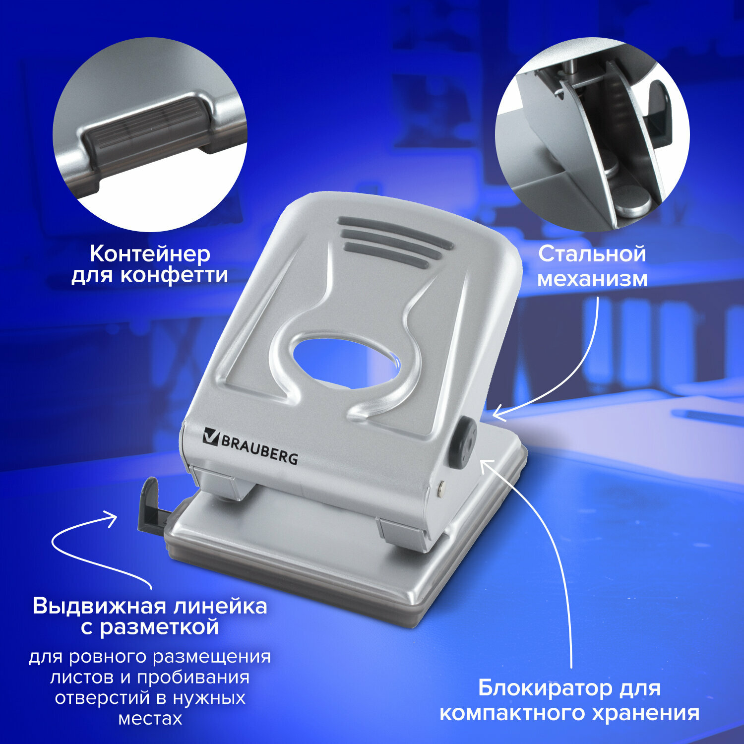СохранитьДырокол Brauberg "Meister", металлический большой, на 40 листов, серебристый (224342) интересное: