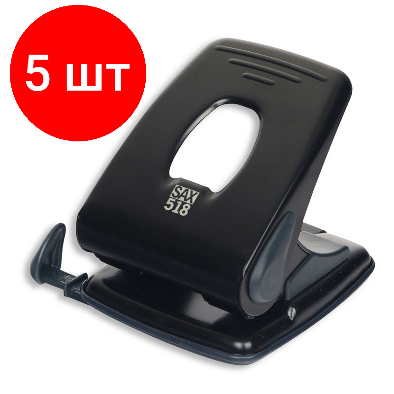 Купить Комплект 5 штук, Дырокол SAX 518 до 40л., металл, с лин., черный-