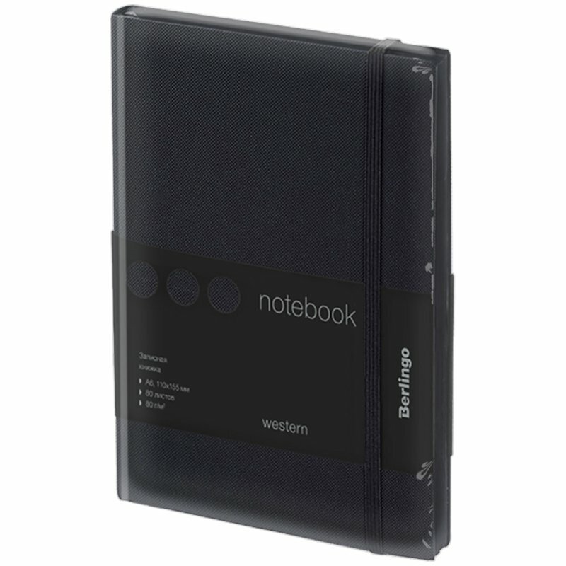 Записная книжка Berlingo "Western", А6, 80 л, кожзам, черный срез, с резинкой, черный