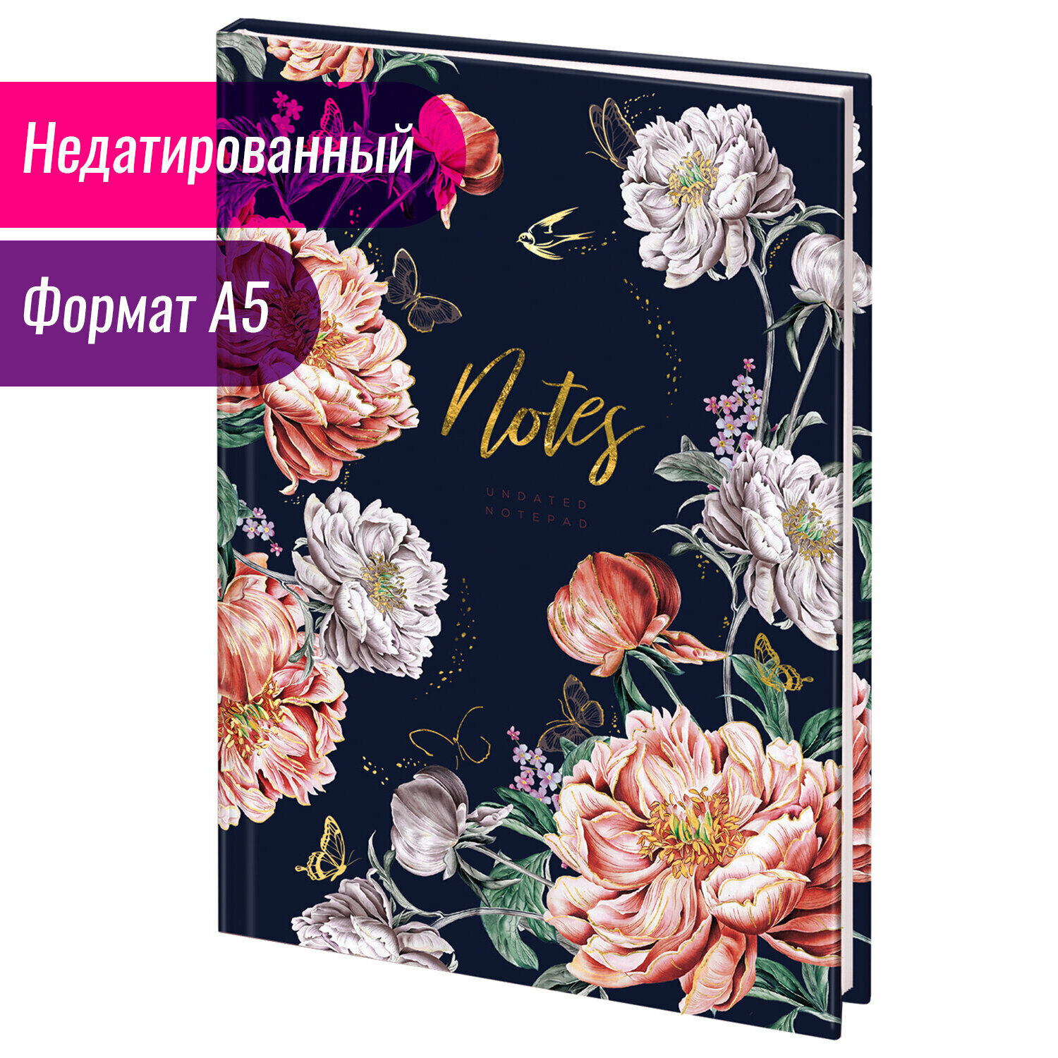Ежедневник недатированный А5 (145х215 мм), ламинированная обложка с фольгой, 128 л., STAFF, "Flowers", 113521 (цена за 1 ед.товара)