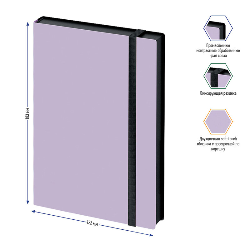 Купить Ежедневник недатированный B6 Berlingo "Instinct" (136 листов) обложка кожзам, черный/лаванда, с резинкой (UD0_91603)