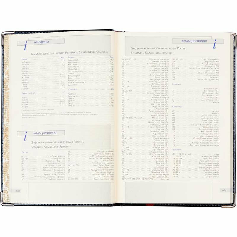 | Особенности | металлические уголки на обложке / справочная информация / ляссе / прошивка по периметру обложки / цветной обрез |