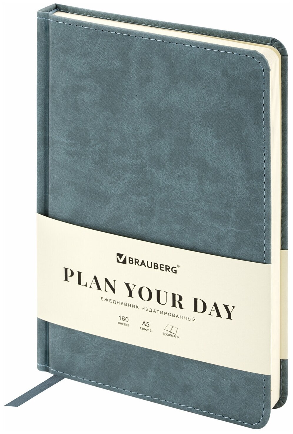 113365, Ежедневник недатированный А5 138х213 мм BRAUBERG Status, под кожу, 160 л., серо-голубой, 113365