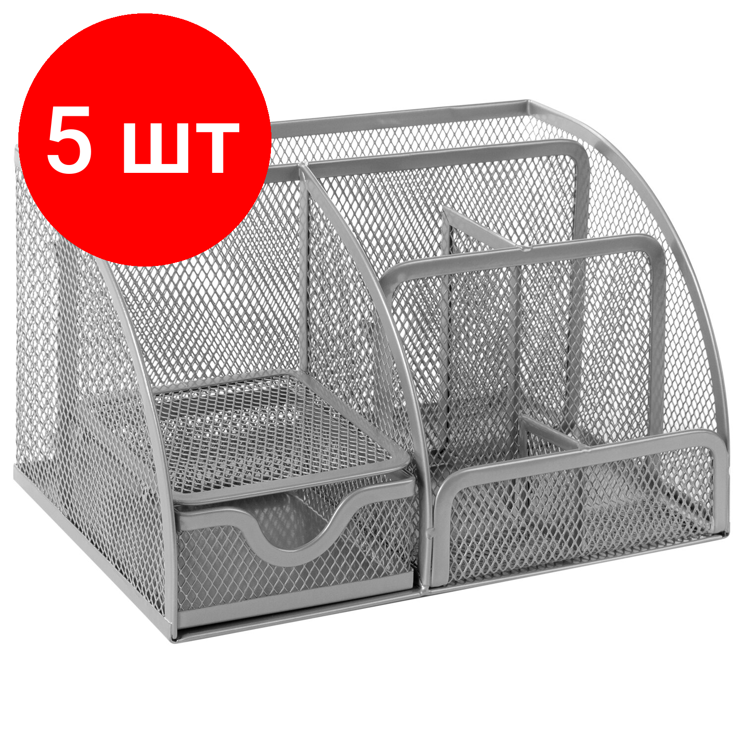 Комплект 5 шт, Подставка-органайзер BRAUBERG "Germanium", 5 секций, 255х180х105 мм, металл, серебро, 237974