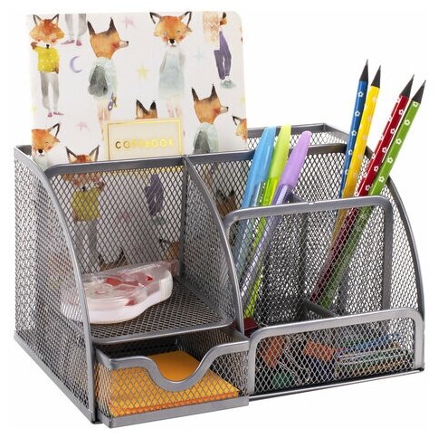 Органайзер для канцелярии настольный школьный большой, подставка для ручек и карандашей в офис, 5 отделений, металл, 255х180х105 мм, Brauberg Germanium, 237974