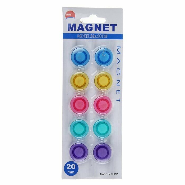 Набор магнитов для доски, 10 шт., d-2 см, прозрачные, на блистере, микс (комплект из 20 шт)