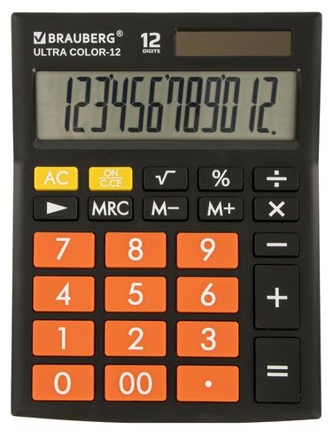Калькулятор настольный BRAUBERG ULTRA COLOR-12-BKRG (192x143 мм), 12 разрядов, двойное питание, черно-оранжевый