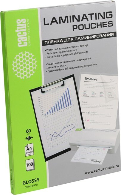Cactus плёнка для ламинирования Пленка для ламинирования 60мкм A4 100шт глянцевая 216 x 303мм 1059665 LPGA460100