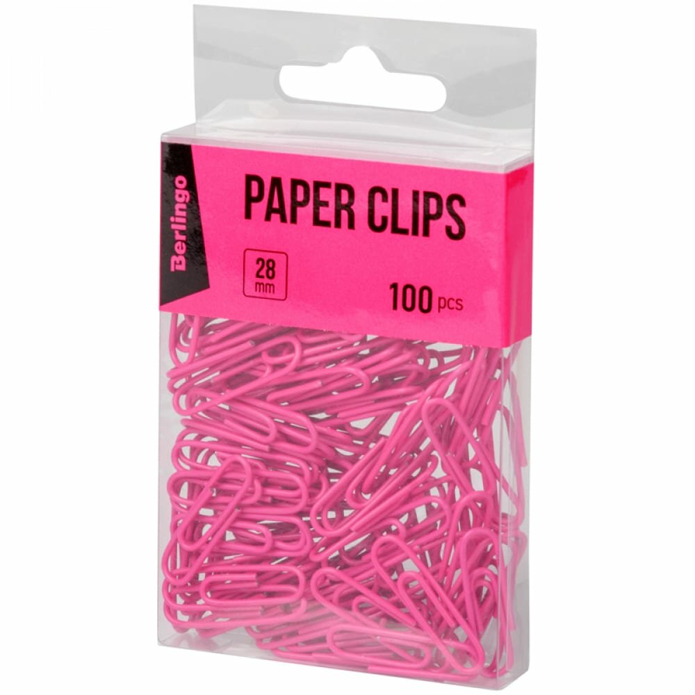 Скрепки 28мм, Berlingo, 100 шт, цветные, ПВХ упак., европодвес, розовые (арт. 301704)