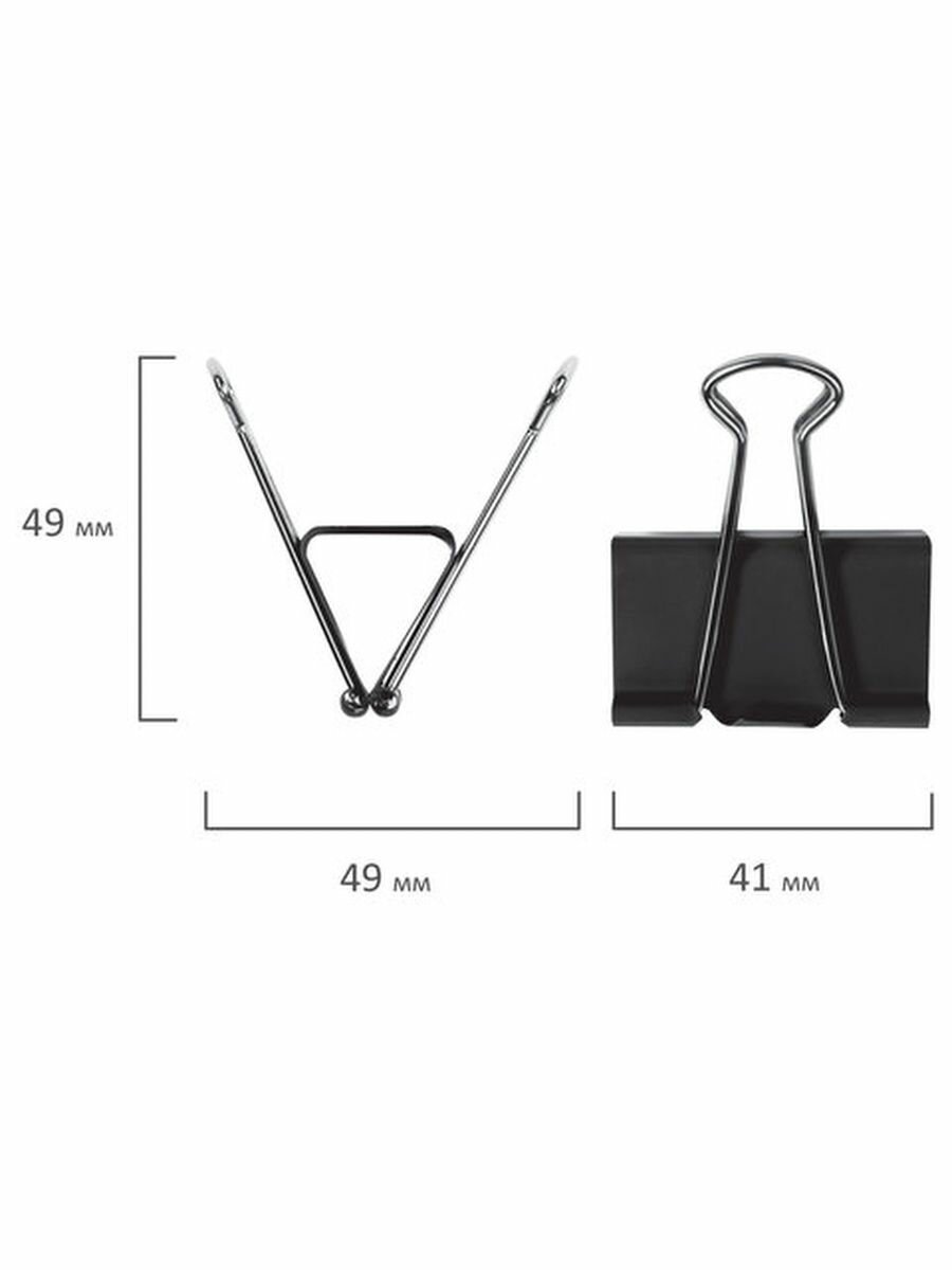 Зажимы для бумаг Brauberg 12 шт, 41 мм, на 200 листов, черные (221538)