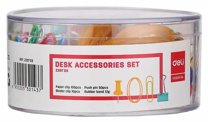 Купить Набор мелкоофисный Deli EZ20703, резинки для купюр 12гр, гвоздики 50шт, скрепки 100шт, зажимы 10шт