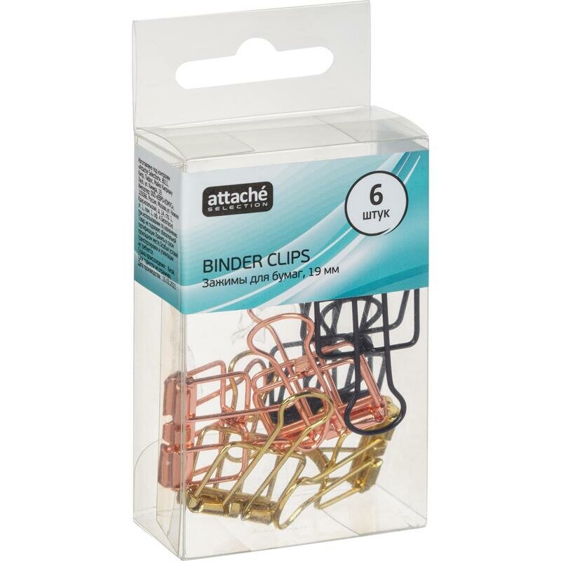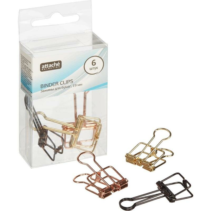 Зажим для бумаг Attache Selection, 19 мм, 6 шт (цвет в ассортименте)