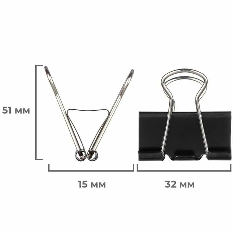 Зажимы для бумаг Attache 32 мм черные (12 штук в упаковке), 509180