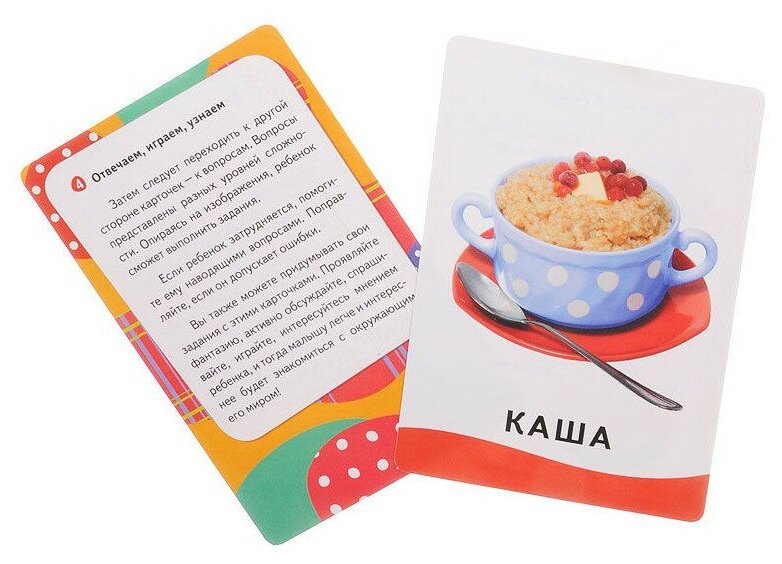 | Плюсы: | Хорошиемкарточки, более-менее плотные. На одной стороне картинка предмета, на другой дополнительные изображения про эти предметы, можно обсудить с ребенком постарше. |