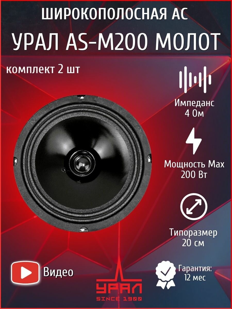 Колонки автомобильные URAL Molot AS-M200, 20 см (8 дюйм.), комплект 2 шт. [ural as-m200 molot]