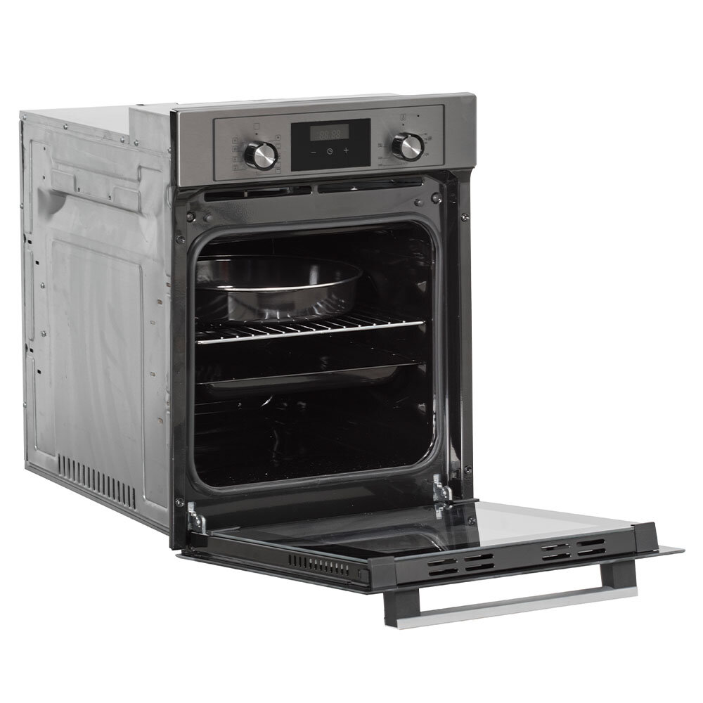 СохранитьДуховой шкаф электрический встраиваемый 45см серый / 9 режимов (гриль + конвекция) / DELVENTO V4EM59001 / дисплей / таймер 90 мин, часы / двойное стекло LOW-E / хром. решетка и 2 противня: стандартный + круглый / подсветка / гарантия 3 года интересное: