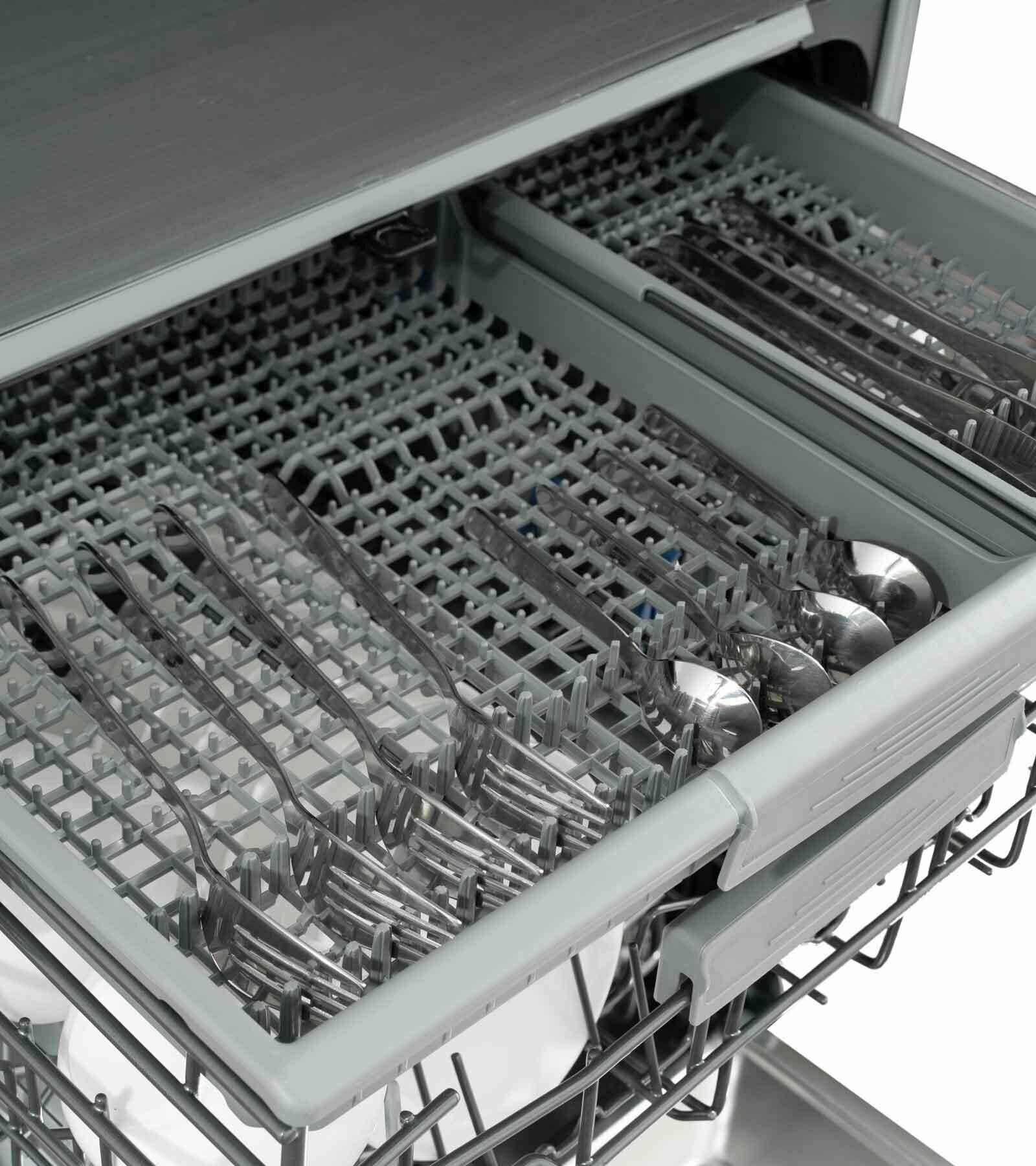| Плюсы: | Вместительная, можно менять высоту верхней полки, чтобы внизу загрузить высокую посуду вроде больших кастрюль.